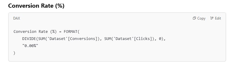 I started experimenting with DAX formulas to create meaningful performance metrics. Here’s what I built: